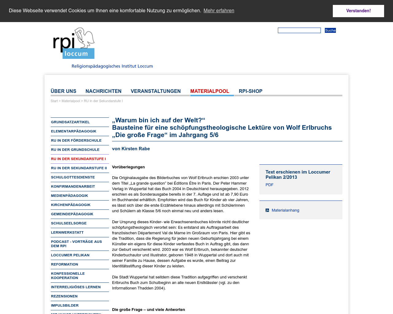 Für die menschen sollte die welt schön sein. Gehen sie rechts auf das entsprechende schlagwort „schöpfung" um zu ihren materialien zu gelangen, oder verwenden sie alternativ dazu die suchmaske (links oben, „beiträge suchen")