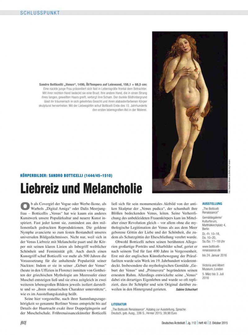 Sandro botticellis gemälde werden oft zitiert, wenn es um die ‚bellezza ideale' geht. .. 1490 botticelli venus gemäldegalerie kat.nr.